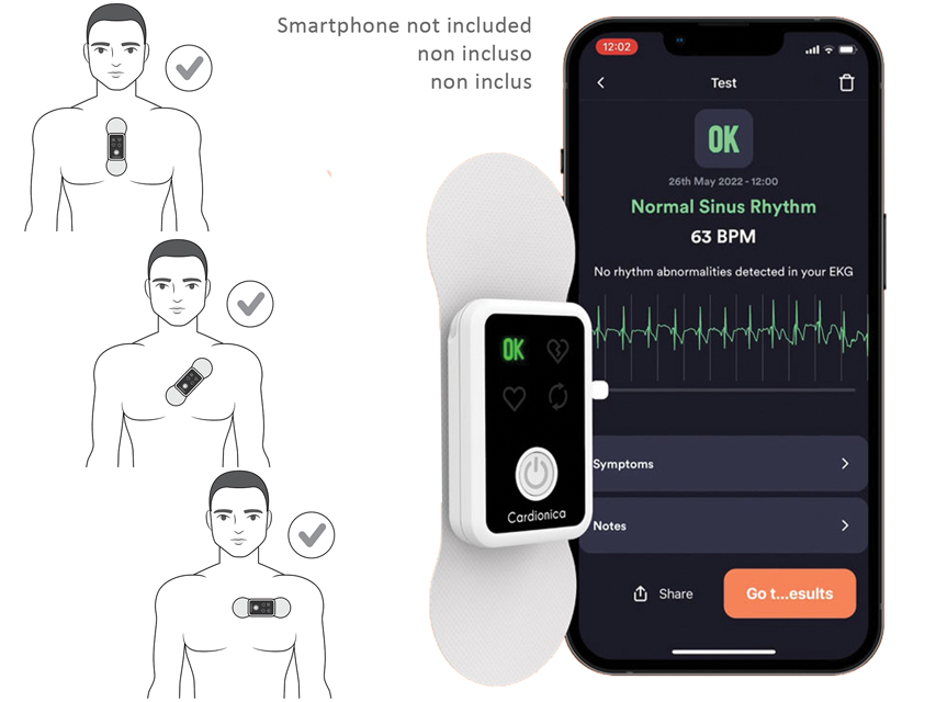 – Stand alone or via App: applying the adhesive electrode on the chest, it can be used in stand-alone mode or connected to smartphone via Bluetooth.
