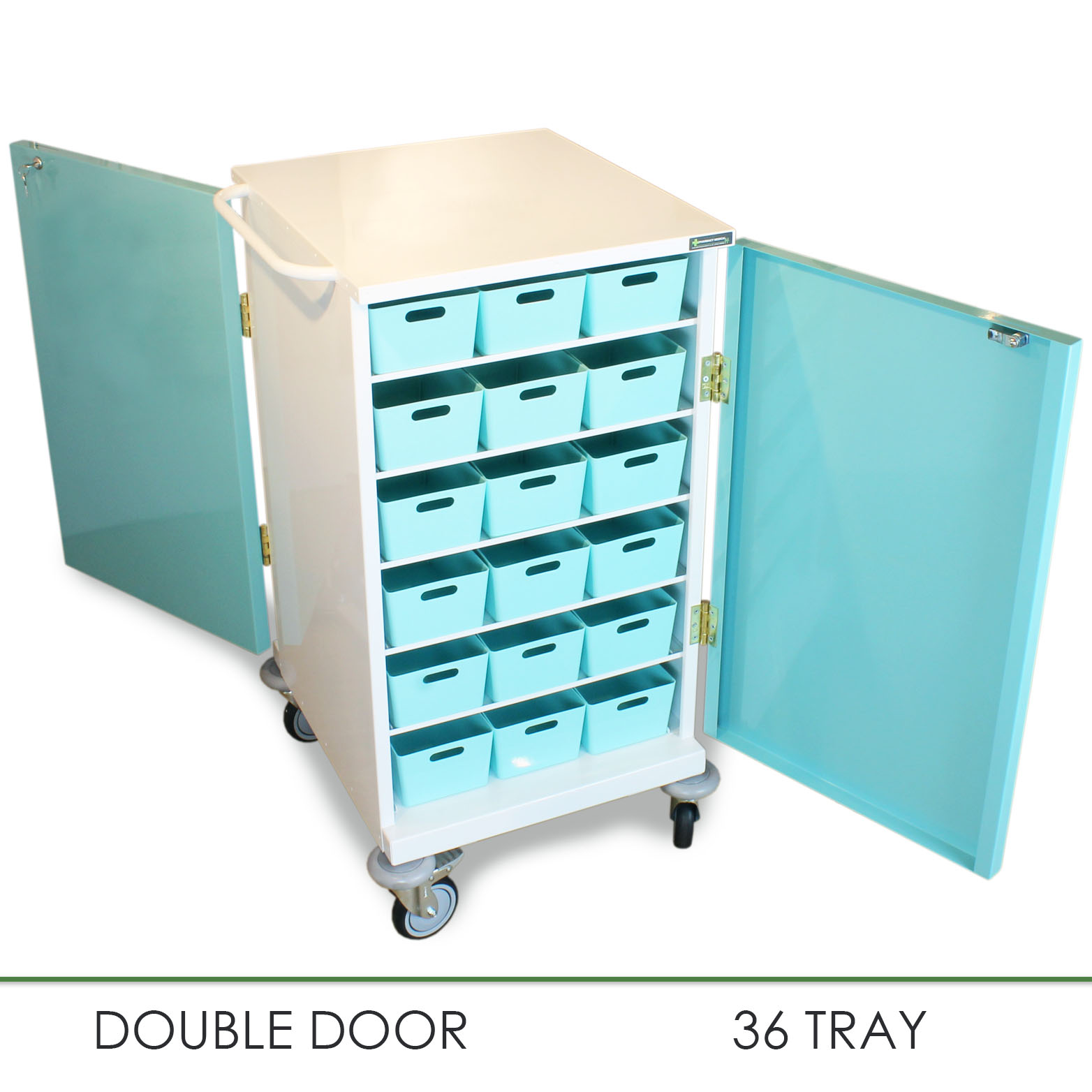 18 White and 18 Teal trays supplied.