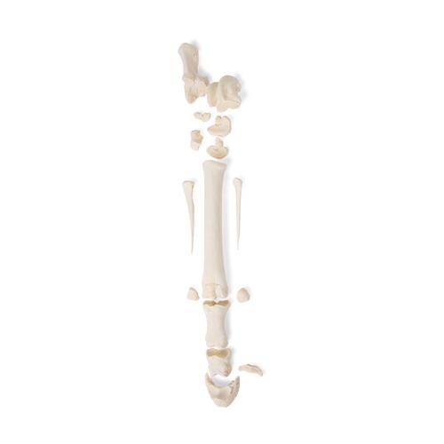 Complete and non-assembled hind limb of a horse without pre-drilling. Ideal for demonstrating the typical bone structure and anatomy. Small bones can be loose. Does not
