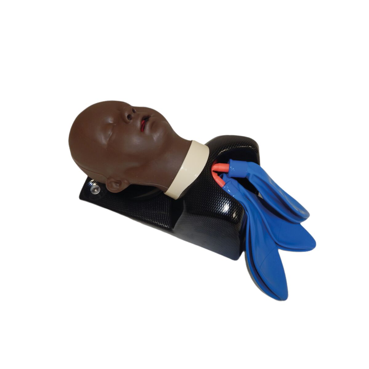 Realistic airway allows for training in all aspects of infant airway management including positive pressure ventilation, insertion of laryngeal masks and endotracheal intubations (nasal and oral).