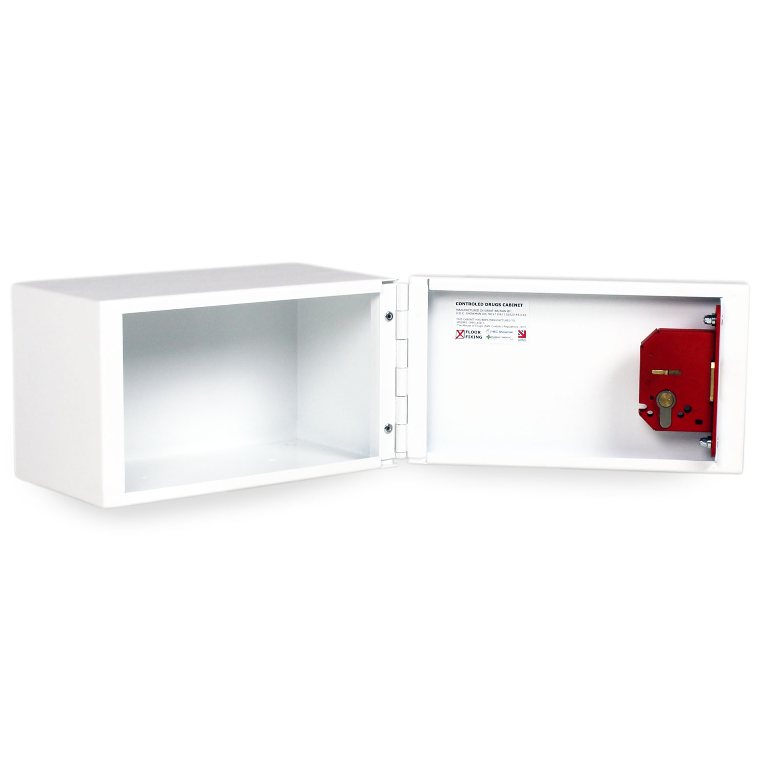 Floor fixing with 4 x 10mm x 75mm long hexagon head sleeve anchors (supplied). Cabinet should be fitted by a competent person.