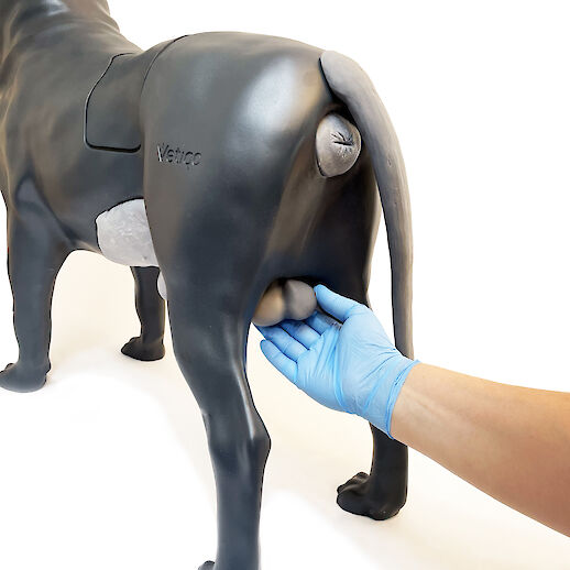 Experience a lifelike simulation of the male dog with Andy. Its detailed genital tract provides an anatomical and functional representation of the male genital organs for realistic training in manual semen collection. The extendable penis with swellable bulb and controllable ejaculation function enables practical training of relevant movements. The flexible nature of the penis allows natural handling as on a living animal.