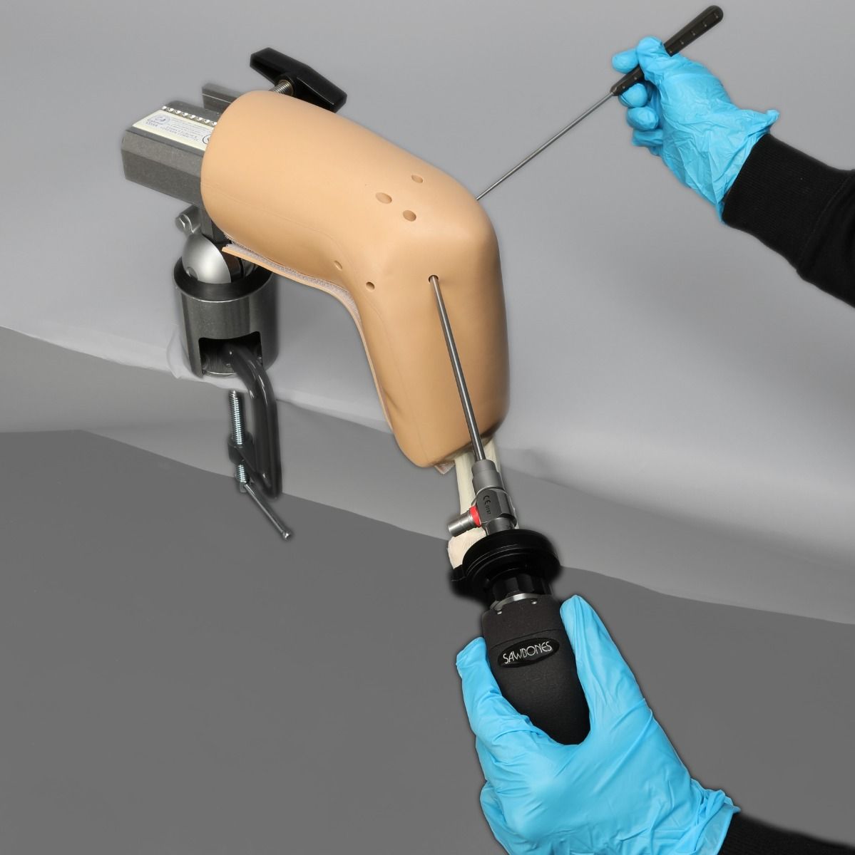 Arthroscopy Elbow with Reusable Portals can be used for diagnostic and operative techniques. Model features 7 premade portals for optimal viewing of joint space and repeatable training – no need to make new incisions between students or workshops. Replaceable insert include cartilage erosion of capitulum, fracture of radial head, loose bodies and modified proximal end of humerus for clamping.