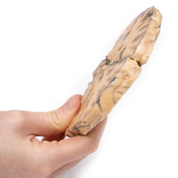 This brain specimen is a coronal section. In the right temporal lobe, a poorly demarcated tumour is present. There is enlargement of the hemispheres and flattening of the gyral pattern. From the posterior aspect of the specimen subfalcine herniation* is appreciated and the tumour appear less well differentiated with haemorrhagic and necrotic foci. Histology of this tumour showed an astrocytoma, Grade III/IV.