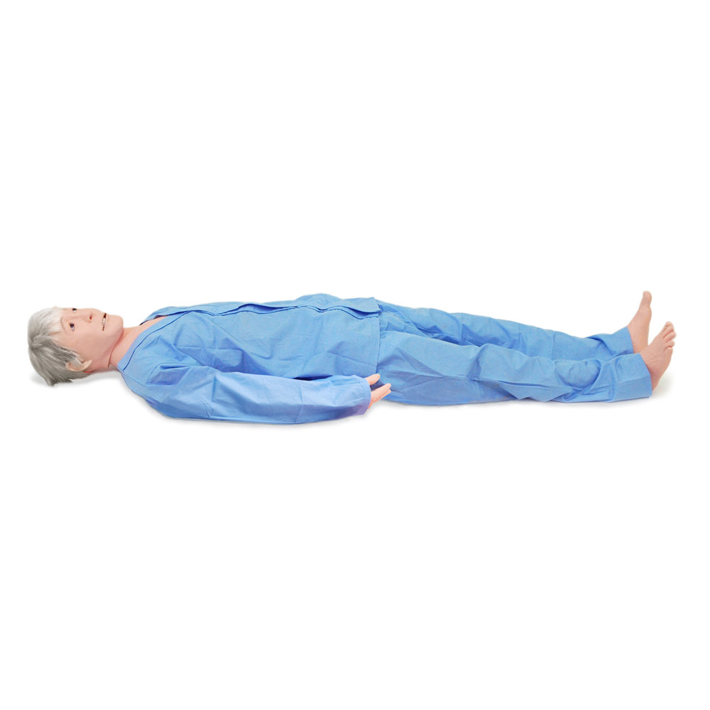 This manikin facilitates training for various procedures essential for elderly patient care, such as bathing, hair care, positioning and oral care.