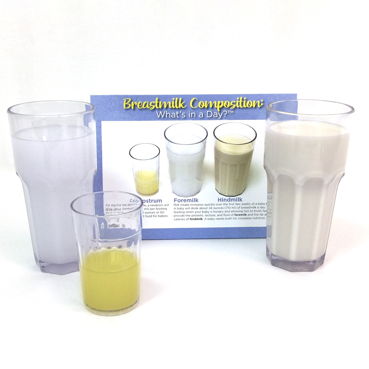 How much breastmilk does a growing baby receive in an average day? Models of colostrum, hindmilk, and foremilk provide instructive visuals, and accompanying two-sided tent card explains the nutritional value of each component of breastmilk. Comes with carrying case. Tent card measures 22 cm x 15 cm.