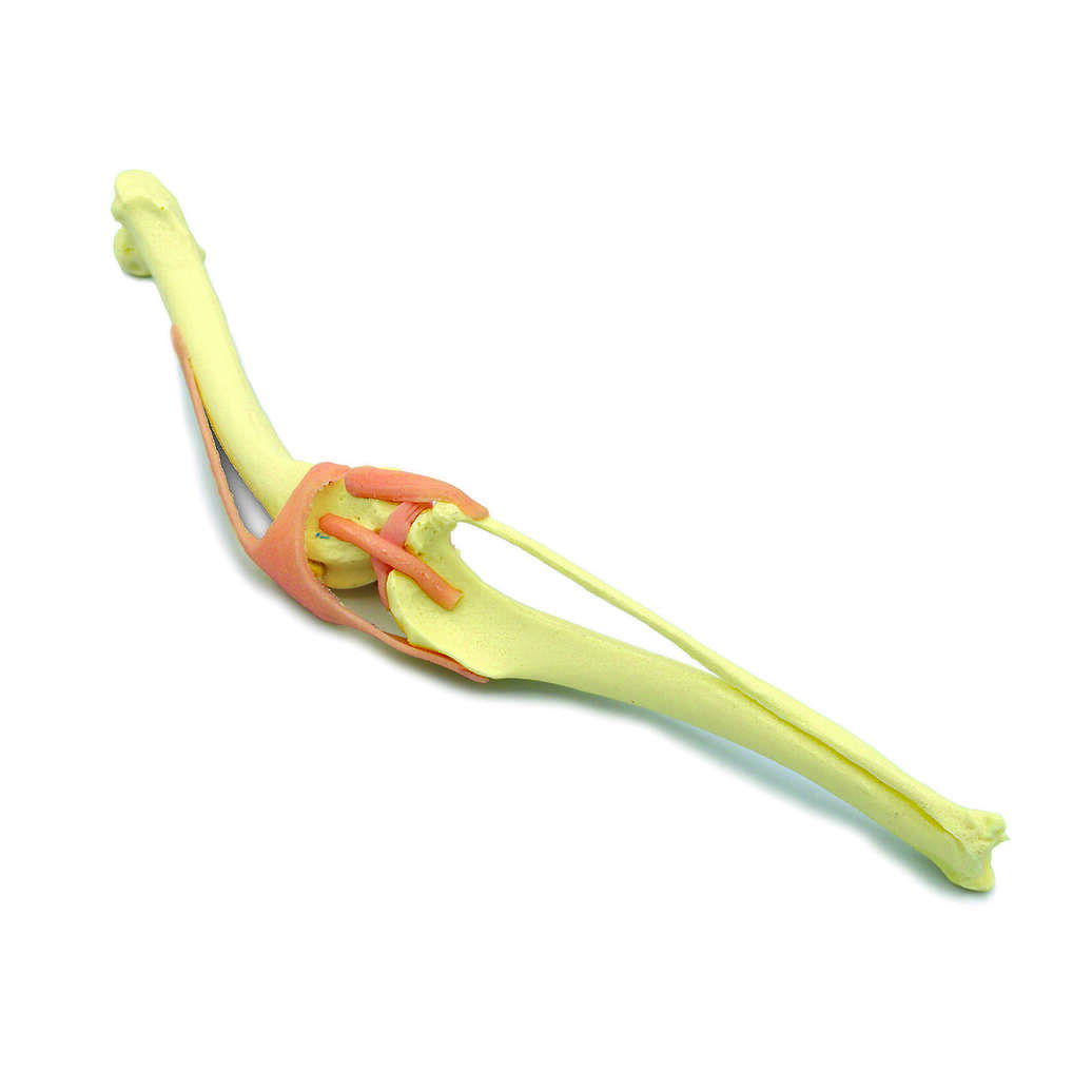 This detailed joint faithfully represents the anatomical structures of a knee joint. In addition to the lifelike bone points, the mensicus and ligaments are also elastically recreated, enabling functional representation for orthopaedic demonstrations or surgical skills training.