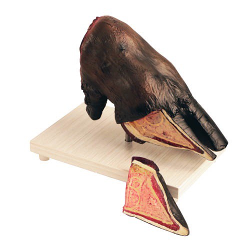Two-piece model of a cow’s hoof, depicting the external and internal structure. Model on the base.