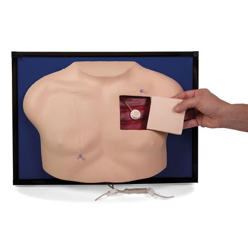 Teach patients and healthcare staff the care and use of two different types of catheters with this model. Features left and right subclavian catheter connections that may be flushed with water; implanted venous access system with a “skin” flap over the implant to allow viewing. Made of skinned, lightweight urethane foam, this model may be washed with soap and water, or painted with antiseptics.