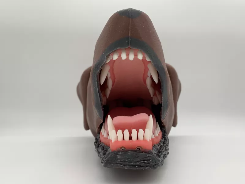 Anatomically correct training model for teaching dental techniques and intubation in medium-sized dogs.