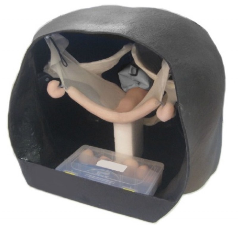 A realistic phantom in the form of a rump of a horse containing organs of the reproductive system of a mare. Intended for practices and sciences in the field of theriogenology, that is dealing with reproduction, including the physiology and pathology of the female reproductive systems of animals and the clinical practice of veterinary obstetrics, gynecology and andrology.