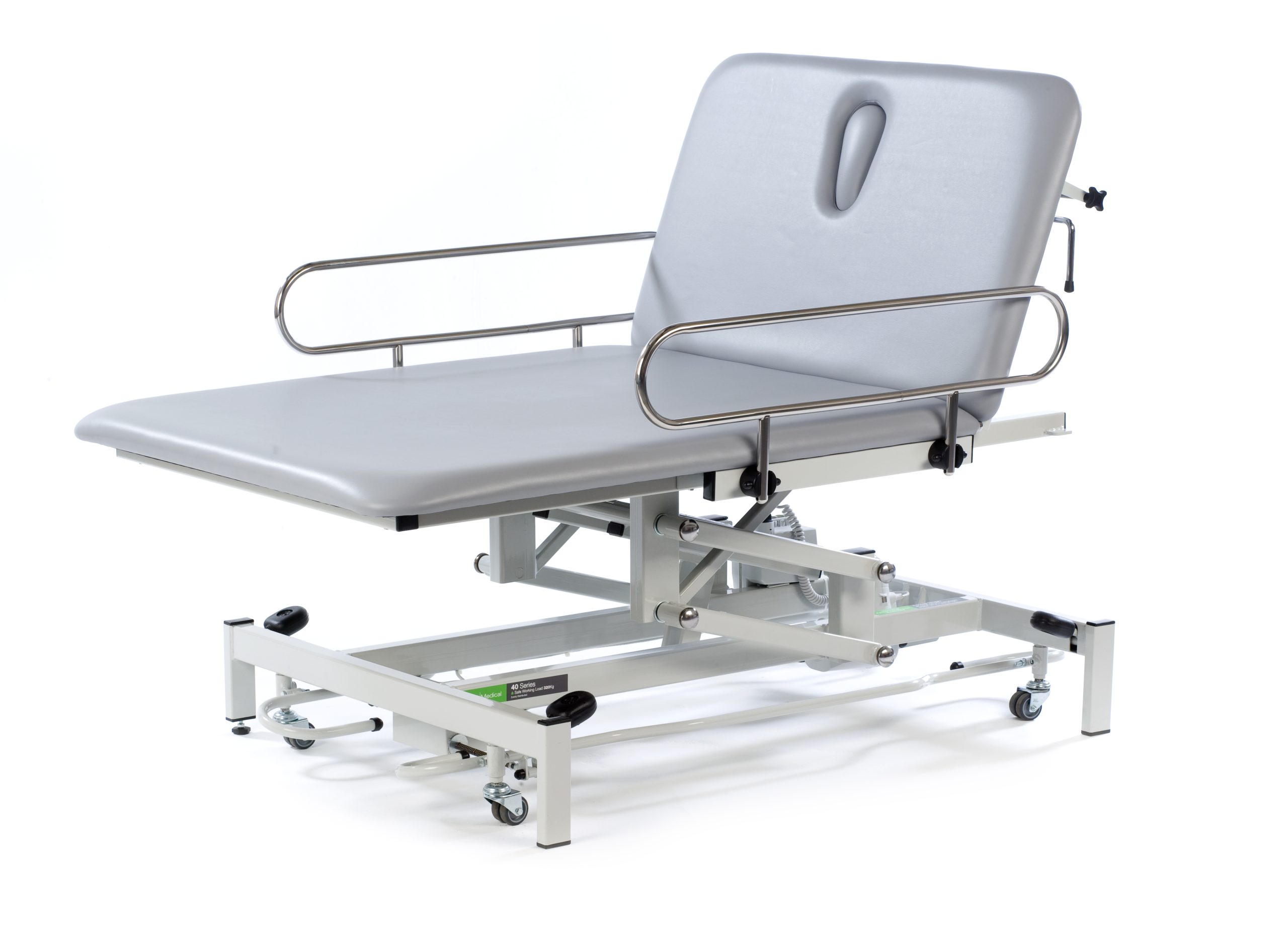 This extra wide bariatric couch provides the means to examine the very largest and heaviest of patients in sitting or lying positions. The couch is raised by simple push button hand switch which also controls the backrest angle and therefore greatly reduces manual handling when positioning the patient for various examinations and procedures. The couch features an extremely wide treatment surface and has a safe working load and lifting capacity of 320kgs. A range of optional accessories are also available to meet user requirements.