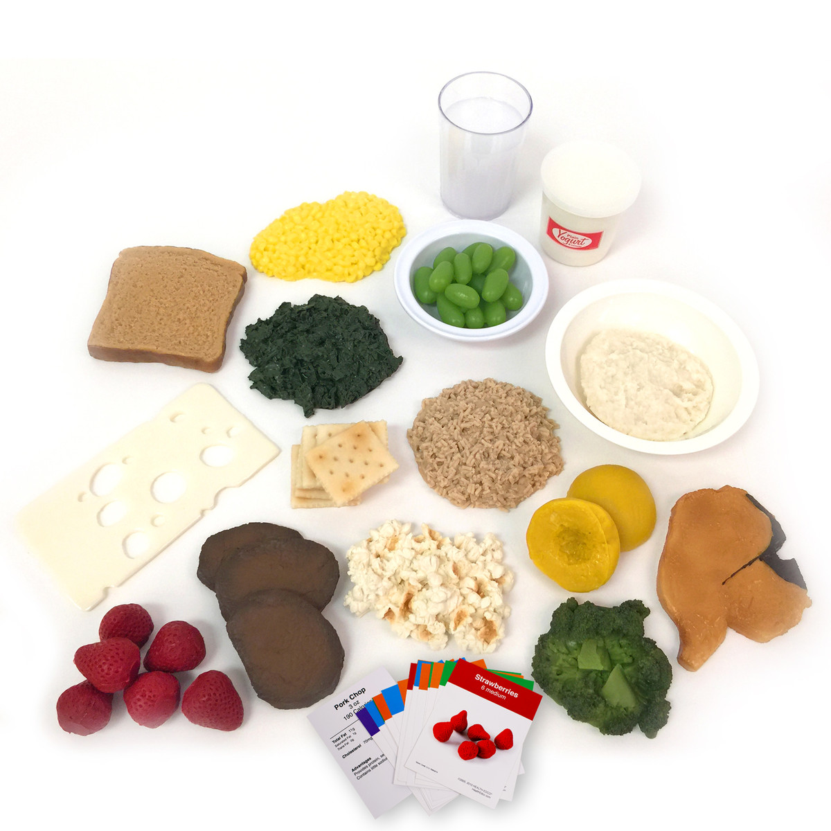 Teaching proper eating habits during pregnancy is easy with this set of 16 foods. Fruits and vegetables include strawberries, peach halves, grapes, raw broccoli, cooked spinach, and sweetcorn. Grains include popcorn, brown rice, oatmeal, wheat bread, and crackers. Dairy products and meats include skimmed milk, Swiss cheese, plain yoghurt, round roast, and a pork chop. Set includes nutrition information food cards for each food, one Nutrition During Pregnancy Booklet (item #38609), and one Childbirth Graphics Tote Bag, Large (item #92866) for ease of transport and storage