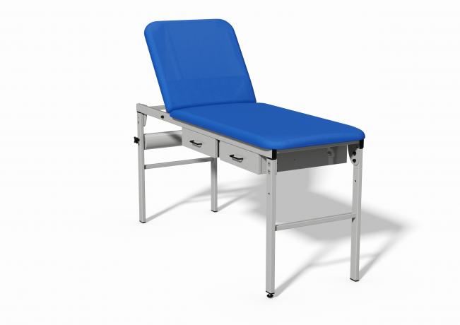 This sturdy fixed height couch has two drawers and a paper roll holder as standard.