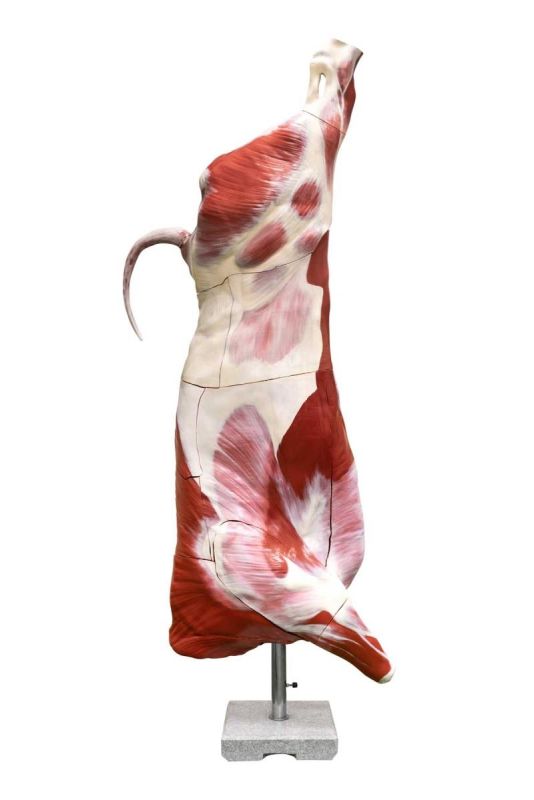 The life size model showing a beef half-carcass on a base. The individual parts of the model were divided according to the DLG classification – “simplified DLG cutting method”.
