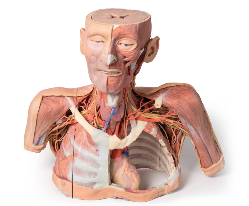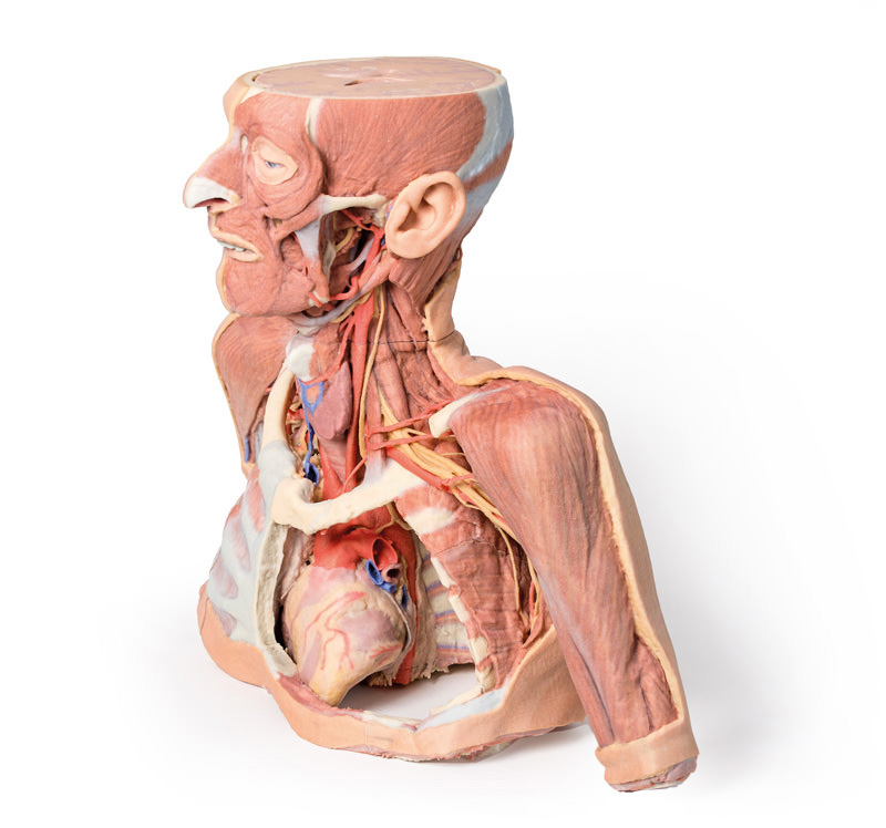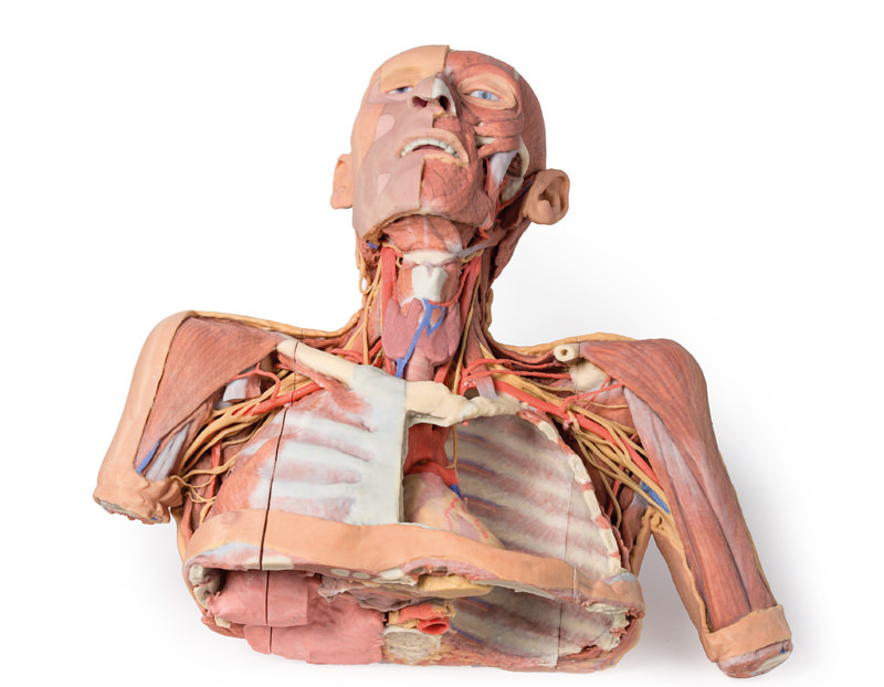 This large 3D printed specimen displays a great deal of anatomy spanning the head, neck, thorax, axillae and upper limbs.