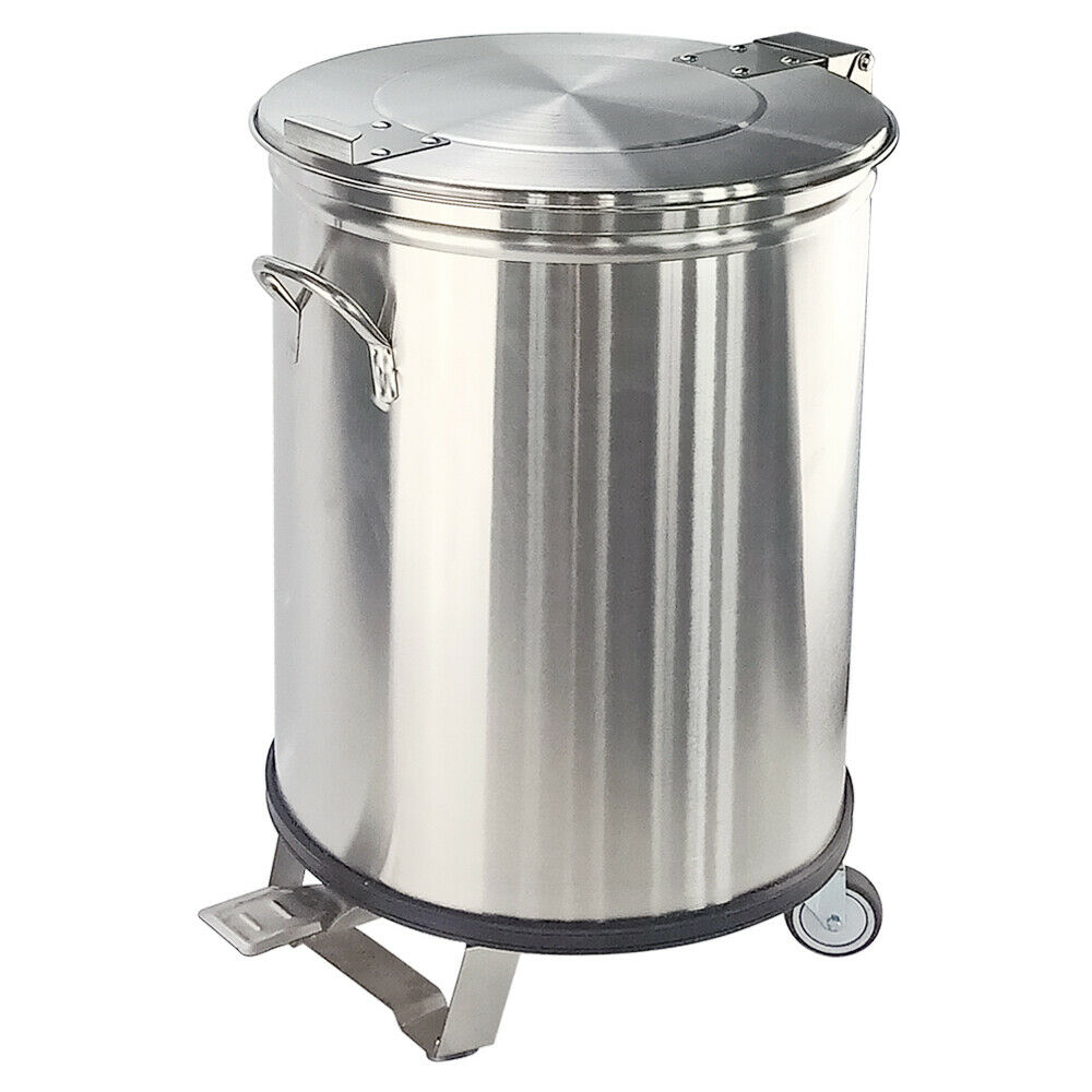 A heavy duty foot operated pedal bin made entirely from stainless steel. The bin conveniently has castors to the rear for easy maneuverability.