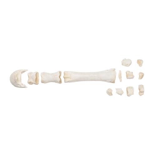 Complete and non-assembled forelimb of a horse without pre-drilling. Ideal for demonstrating the typical bone structure and anatomy. Small bones can be loose. Does not include building instruction.