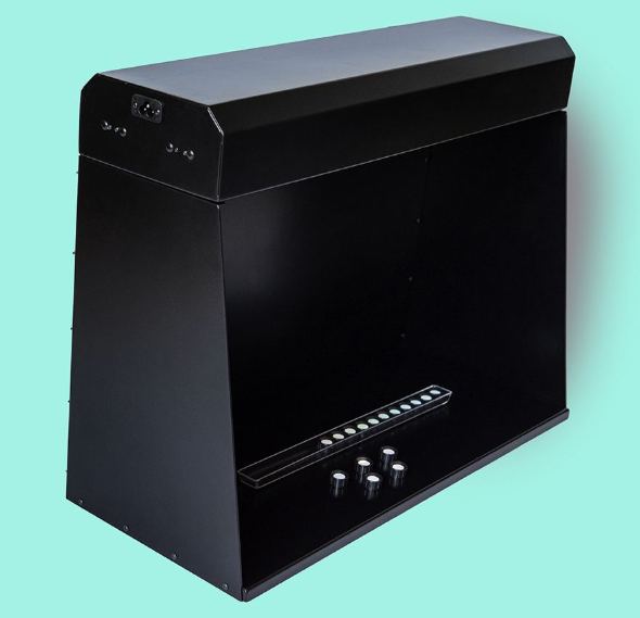 Low voltage LED power supply – 3 different light levels: 500, 1000, 2000 lux – 6500K – 97CRI – 220V 18W – made in Italy CE – 60x25x45cm (LengthxDepth/Height) – weight 8 kg – structure in matt black painted sheet metal to avoid any reflection and to have a colour evaluation as if the test was carried out under natural outdoor lighting conditions