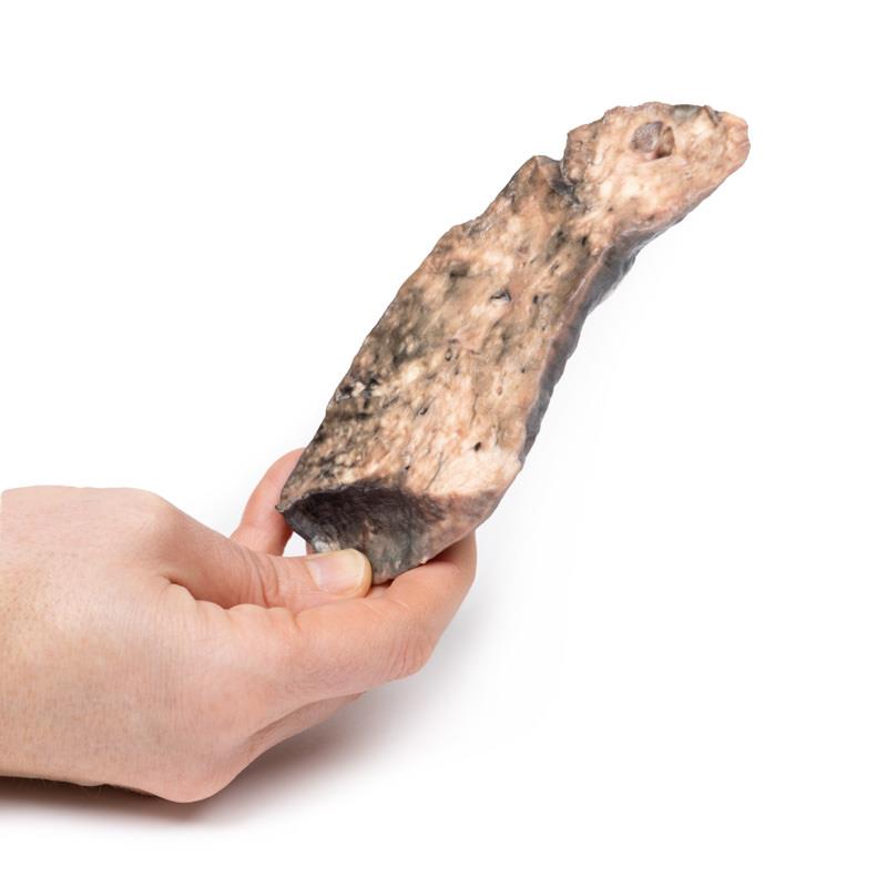The lung parenchyma shows extensive changes mainly with a bronchial distribution. Many bronchi are dilated (bronchiectasis) and contain thick, yellowish, purulent material. These changes are most marked in the upper lobe, at the apex of which a small focus of ‘honeycomb’ change is also seen. Multiple abscesses are present, especially in the basal and central parts of the lower lobe. The base of the lower lobe is severely affected with fibrosis and consolidation being evident. There is very little normal lung tissue remaining. These pathological changes are characteristic but not pathognomonic of cystic fibrosis.