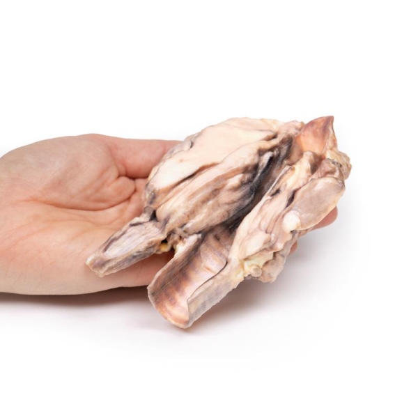 The larynx, thyroid, upper trachea and oesophagus are included in the specimen. The enlarged left lobe and to a lesser degree, the right lobe of the thyroid, are replaced by homogeneous pale tumour tissue. Stretched over the lateral margin of the left lobe is the common carotid artery. Note on the internal aspect how the larynx is compressed and the oesophagus virtually disappears into the bulk of the tumour. The histological appearance of the tumour was consistent with lymphoblastic lymphoma of the thyroid. The rarity of this tumour makes it necessary to exclude the diagnosis of anaplastic carcinoma of the thyroid, and secondary spread from lymphoma elsewhere.