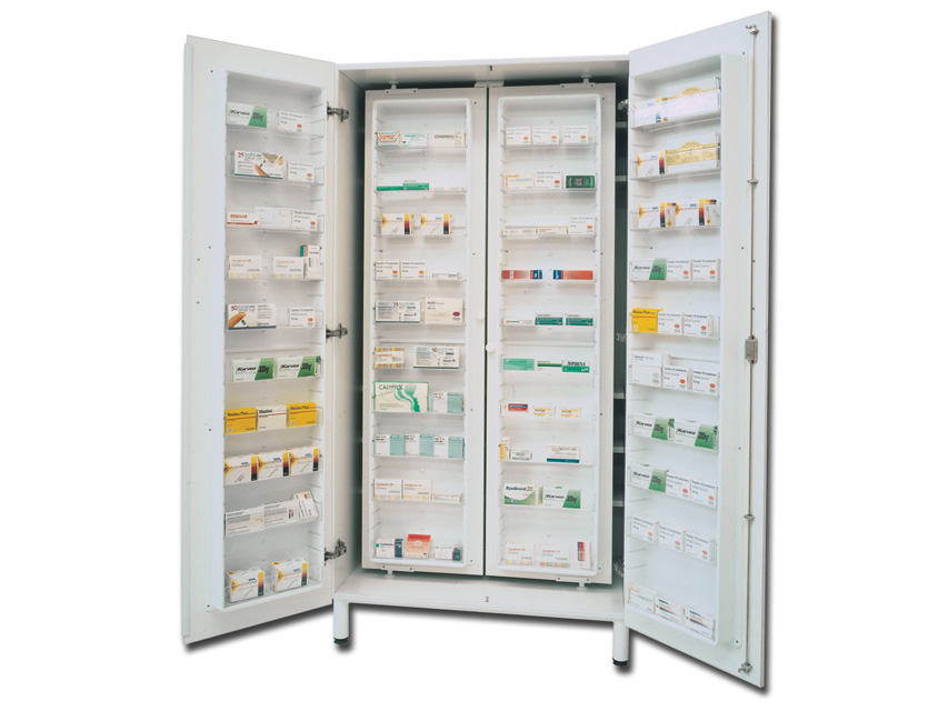 – 2 external lockable doors turning through 180° with 10 medicine compartments each