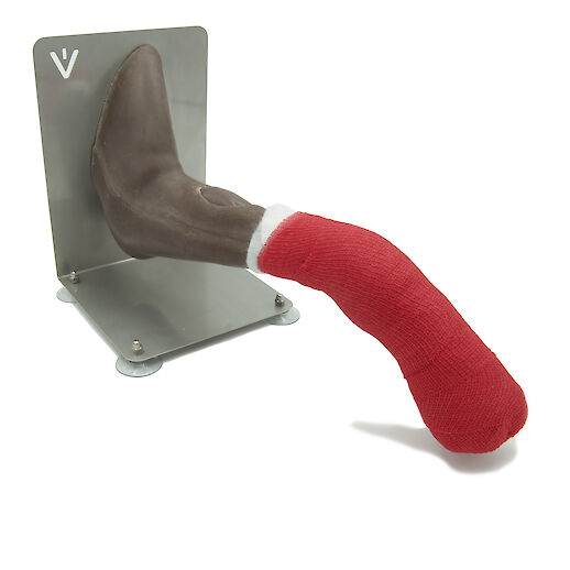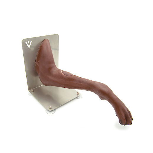 Our Mr. Vein allows for hands-on training of injection techniques and paw bandaging on the dog’s leg. With the integrated elbow and carpal joint, handling and fixation of the foreleg can be simulated under realistic conditions.