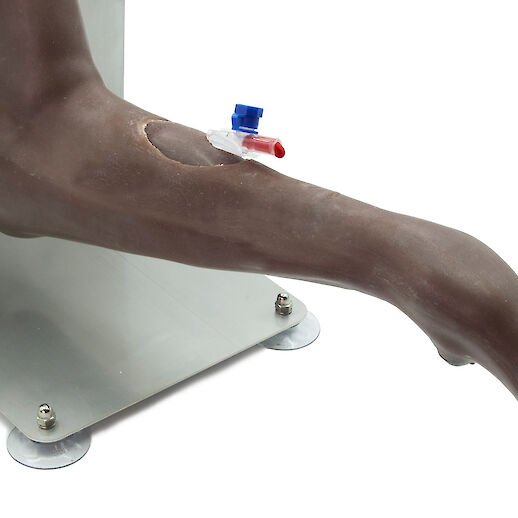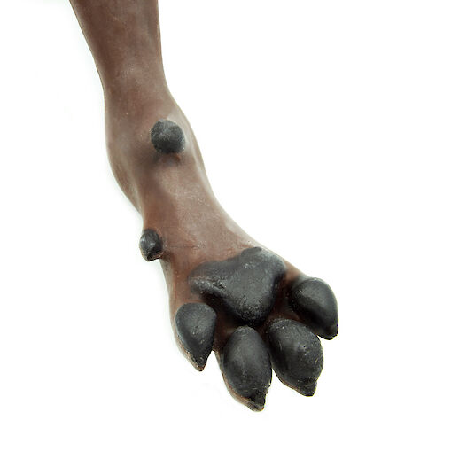 Blood samples can be taken from the movable cephalic vein and venous catheters can be inserted in a lifelike manner. The detailed representation of the individual toes with pads and interdigital spaces also enables the application of paw bandages.