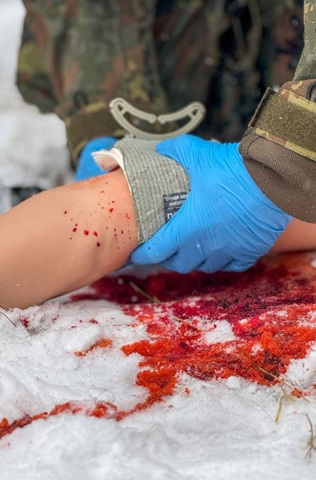 The Trauma Arm Simulator is a realistic upper-limb training model extending from the fingers to the upper arm, designed for combat and emergency medical education. It features anatomically accurate vessel pathways, hand-painted wounds, and a functional bleeding system for realistic hemorrhage control training.