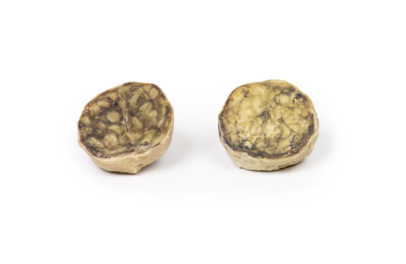 The specimen is an enlarged prostate gland sliced transversely to display the external and cut surfaces, On the cut surface there are numerous nodules varying in size from 2-10mm in diameter. This is an example of benign nodular hyperplasia (BPH) of the prostate gland.