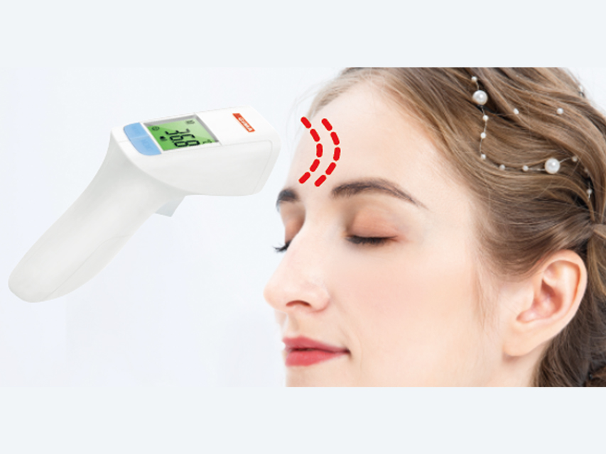Multifunctional infrared non contact thermometer with 4 applications: body, liquid, food, ambient temperature.
