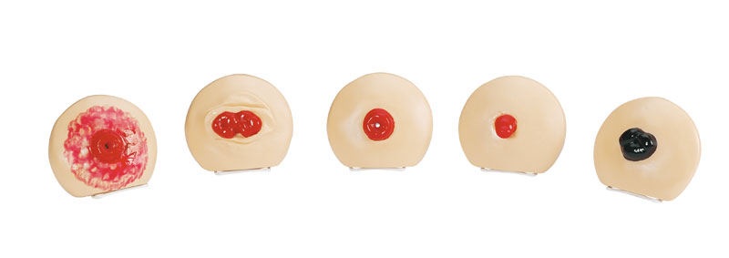 Includes 5 independent Ostomy Care Training Models: Nonfunctioning Double Barrel Ostomy Care Training Model, Nonfunctioning Prolapsed Ostomy Care Training Model,
