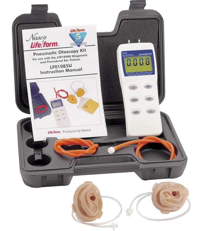 This option offers an additional feature for the Diagnostic and Procedural Ear Trainer. While pneumatic otoscopy is indispensable for examination of the ear, studies have shown that most are performed incorrectly! Now with the valuable feedback offered by this kit, students, residents, and practicing physicians can learn how to generate the correct amount of air pressure needed to perform accurate pneumatic otoscopy to test for tympanic membrane mobility. Kit includes a pneumatic pressure gauge, two pneumatic ears