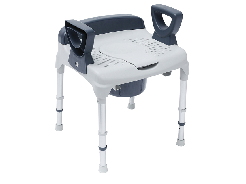 Two function chair: body care and personal hygiene. It can be used as a toilet chair or as a shower chair.