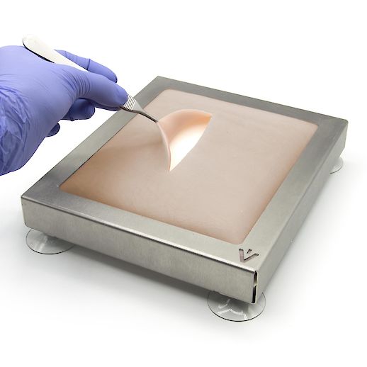 This three-layered suture pad is particularly soft and flexible, perfectly mimicking the characteristics of delicate primate skin. It is suitable for practicing incisions, sutures and surgical knot techniques under realistic conditions. The visual and textural demarcation between skin and subcutaneous tissue additionally provide opportunity for intracutaneous suture practice.