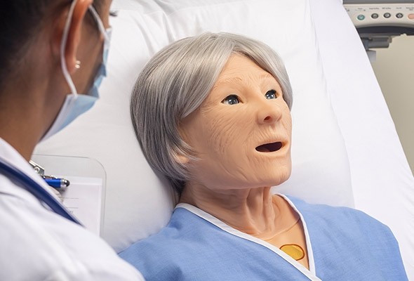 The geriatric face skin accessory is designed to expand the breadth of the learners’ experiences and aid educators in teaching patient-centric assessment and care skills. Easily and quickly convert SUSIE’s face and hair to that of an elderly patient for geriatric scenario-based simulations and skill training exercises. The package includes a removable geriatric face skin and a removable wig.