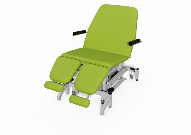 Tilting bariatric podiatry chair allowing even the heaviest of patients to be positioned with greater comfort and in complete safety.