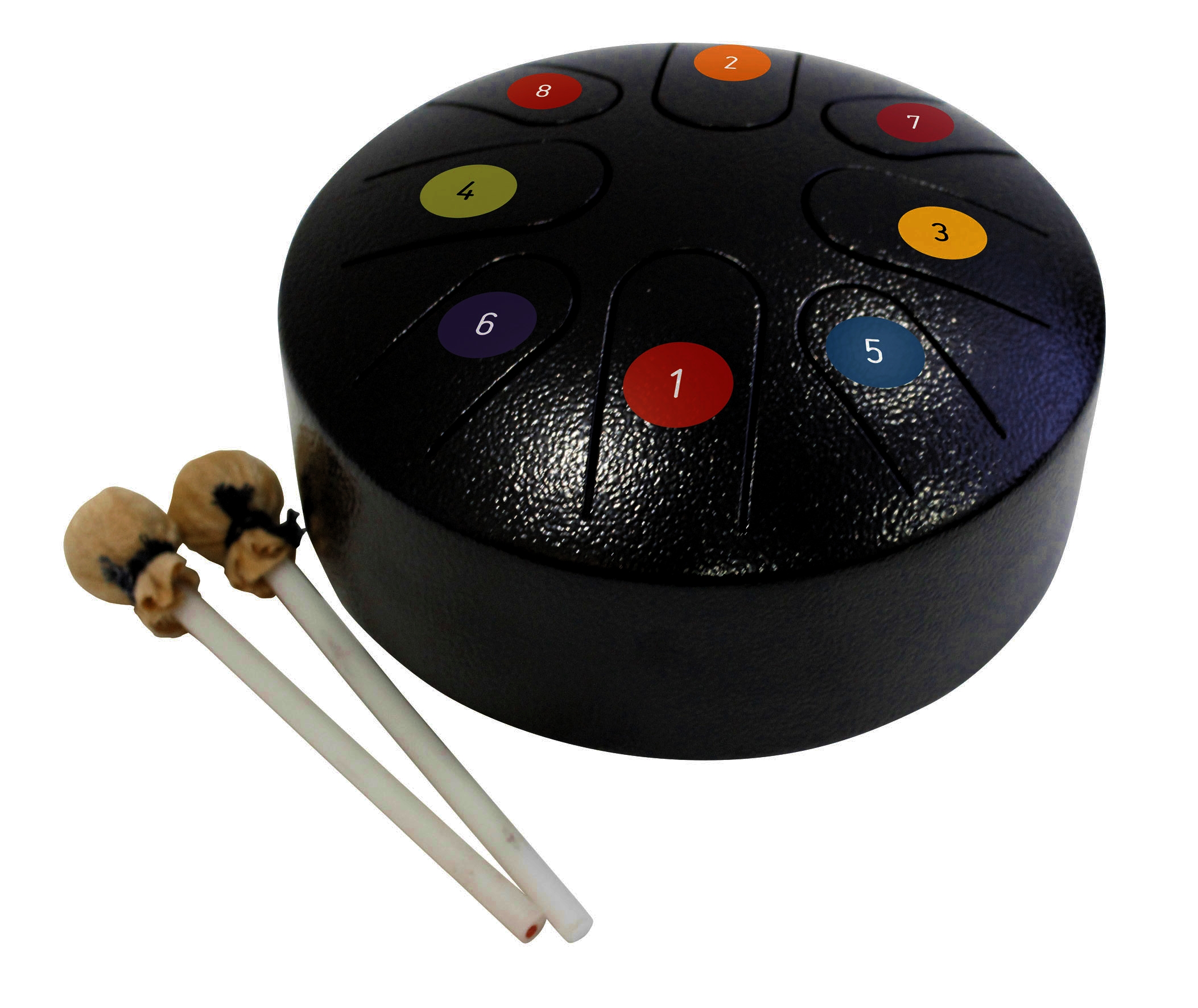 Tongue Drum 8 inch steel hand made Indian tongue drum. 8 note C scale colour coded.