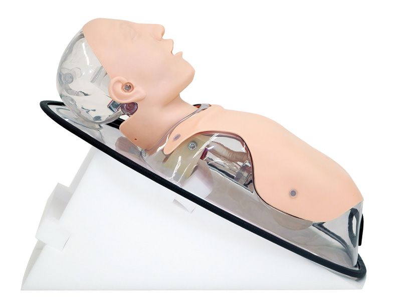 The Tube Feeding Simulator is an effective training tool for caregivers of patients with enteral tube nutrition as well as medical professionals. The manikin has three routes for EN tubes and allows training with real liquid foods. To facilitate anatomical understanding, the feeding routes panel for demonstration and the chest anatomy to overlay the manikin come with the set. The placement of the tubes can be confirmed by auscultation as well as direct observation. This simulator is compact and portable. The neck is flexible to learn appropriate neck/head positioning. Oral/Nasal feeding tube insertion and PEG tube setting is possible. Tube placement can be confirmed by auscultation. The transparent structure allows direct observation of progress and placement of the tube. The manikin can be set at Fowler‘s position. Real liquid foods (formulas) can be administrated. The tube feeding routes panel and the chest sheet facilitate demonstration and anatomical understanding.