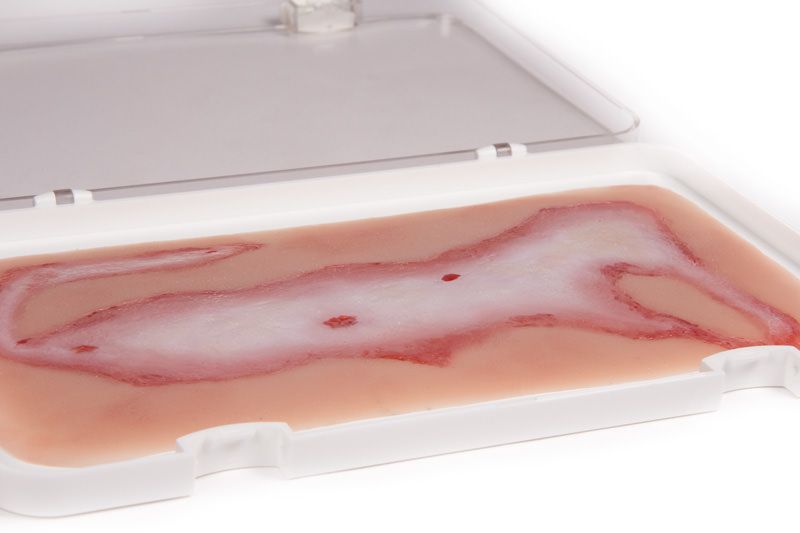 This moulage shows scalding. The moulage adheres to skin or a manikin. For longer training or improved adherence optional glue is available.
